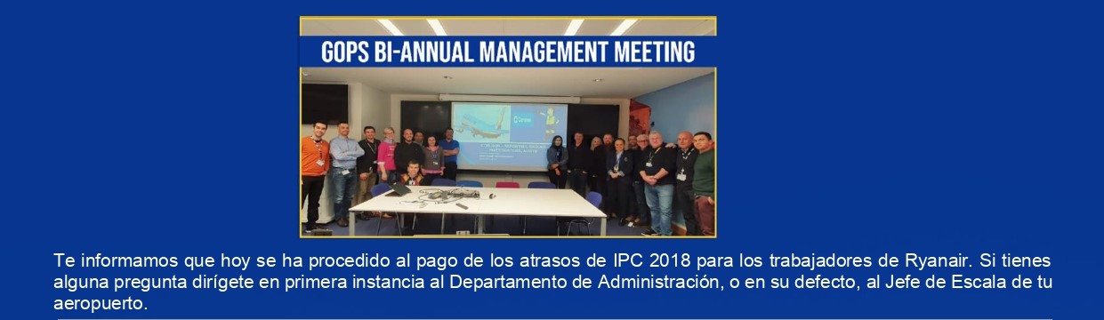 Como sabéis todos los trabajadores de Ryan desde ayer día 31 de enero Azul Handling esta procediendo a pagar los atrasos del IPC hasta el 2018.