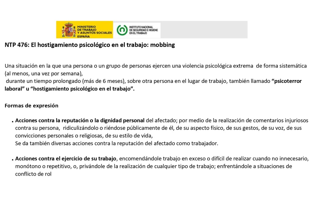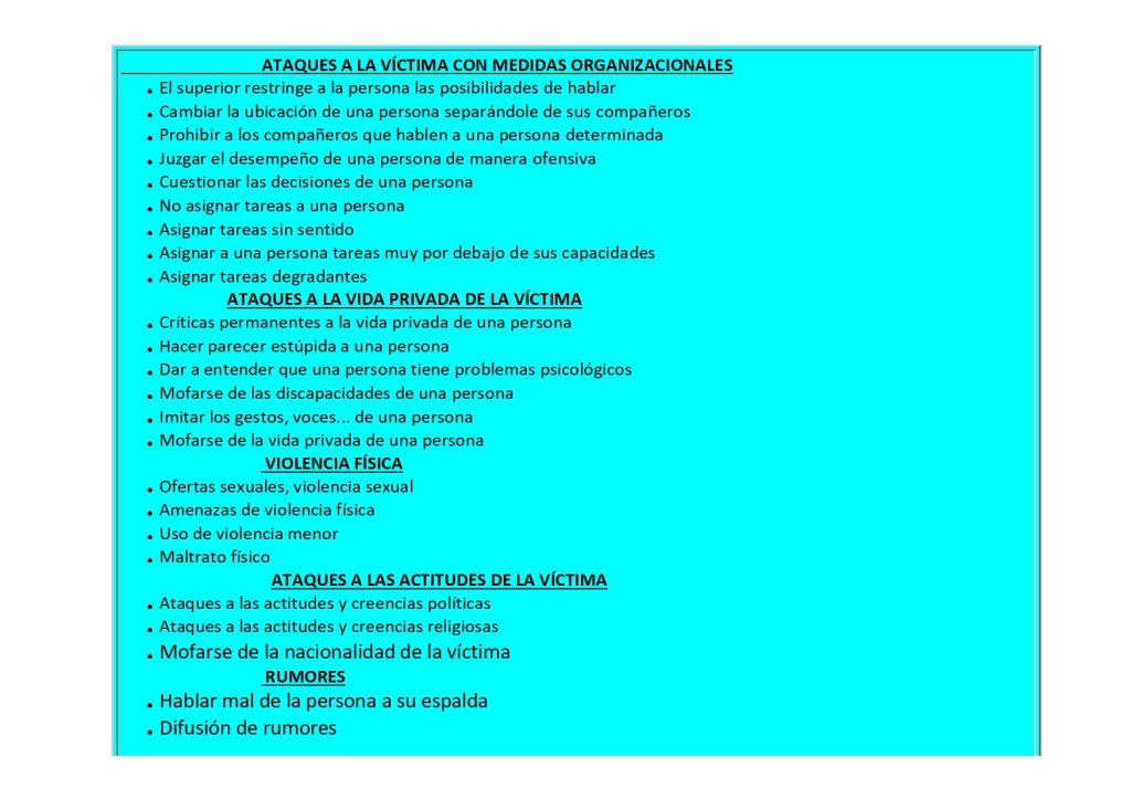 Ante el ataque y acoso que sufren nuestros representantes sindicales por parte de los representantes de la empresa (acoso vertical), ningún colectivo se libra de estas prácticas de abuso de poder en el seno de la empresa, bien sea por nuestros más directos jefes, como por algún compañero ,por ser el más representativo, (acoso ).